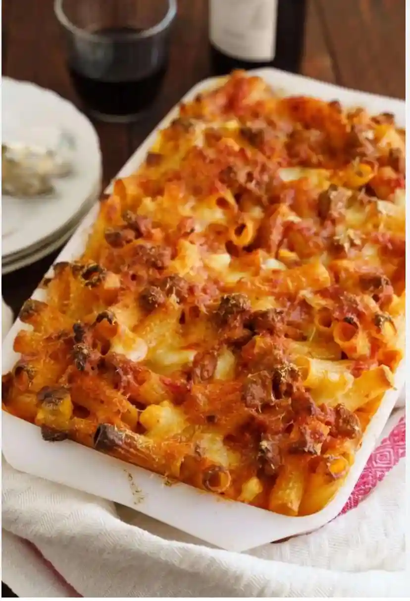 Tomato sauce, Italian sausage, mozzarella, parsley